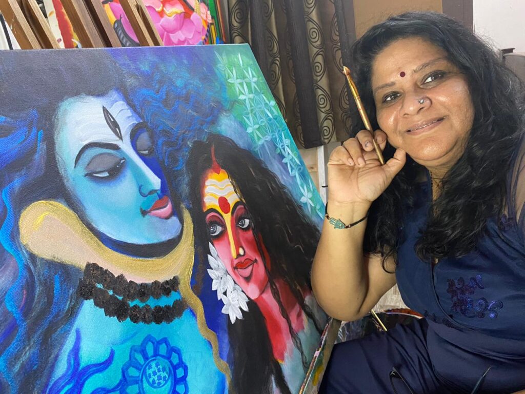 Life changed after my marriage. Army life is all about being able to live in exotic stations and a great opportunity to explore our country, different cultures, in all its vivid glory. One such place immediately after marriage was Chandigarh in the northern part of India. A typical south Indian girl who couldn’t speak Hindi nor was well versed in English, given me a lot of space and time to explore my talents. I had a wonderful neighbor, Mrs. Rajkumar who was an artist, amidst her busy schedule allowed me to watch her while she painted. My journey as an artist started there. My first experiment was with oil colors and copying great European artists and Great Indian Artist Raja Ravi Varma’s works.